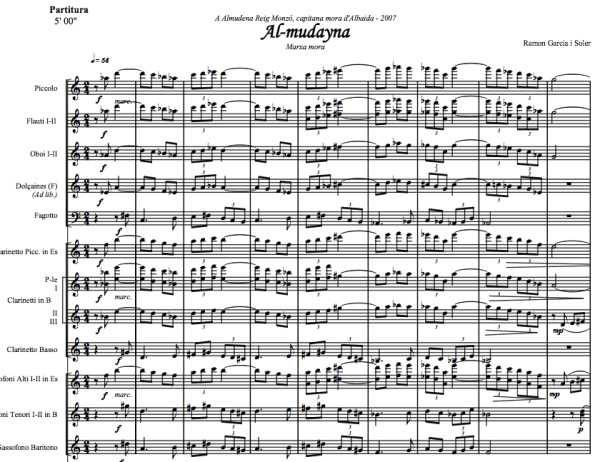 | Dédié à Almudena Reig Monzó, Capitaine Mora par le filà Berberiscos de Albaida (Valence) en 2007. Il a été créé le 9 octobre 2007 à la Parade d'entrée des Maures et Chrétiens d'Albaida par la Société Musicale 'La Pau' de Beneixama (Alicante) . |