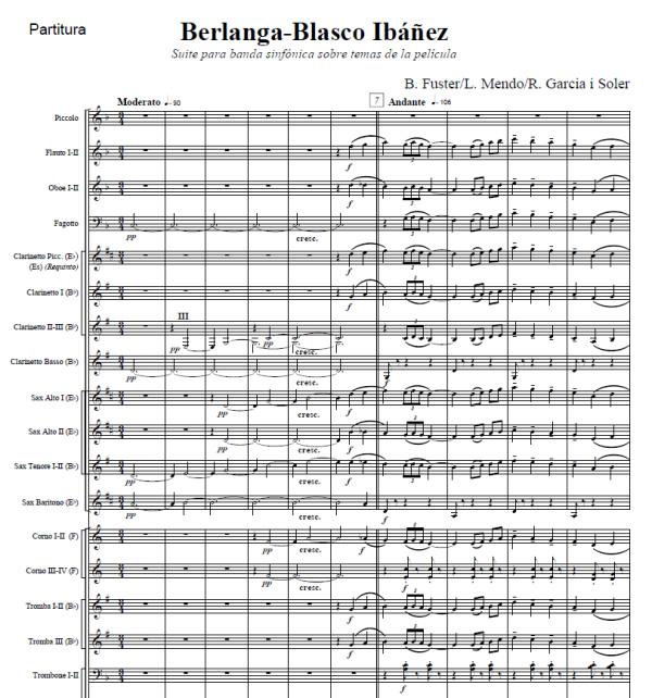 Suite para banda sinfónica sobre temas de la película de los maestros Luis Mendo, Bernardo Fuster y Ramón García i Soler. Cuando Berlanga encargó a Luis Mendo y Bernardo Fuster la composición de la banda sonora de la serie de televisión “Blasco Ibáñez, la novela de su vida” y una vez leído el guión, lo primero que hicieron fue poner rumbo a Valencia para entrevistarse con el maestro Asins Arbó tal y como les recomendó el cineasta.