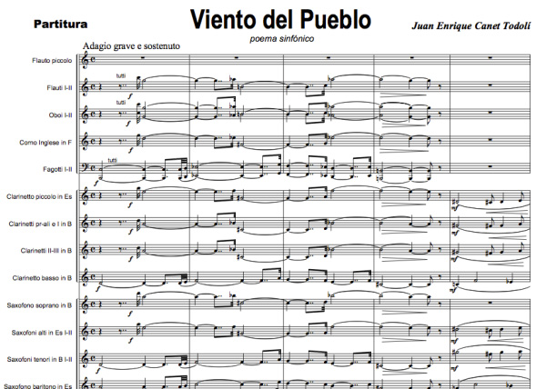 Poema Sinfónico para banda, dedicado a la memoria de Miguel Hernández en el 50 Aniversario de su muerte. Obra estrenada también en versión para orquesta. Del compositor Joan Enric Canet Todoli, De su actividad como compositor podemos destacar las siguientes obras: Sinfonía concertante, para Orquesta y un saxofonista (estrenada en el XI Congreso Mundial del Saxofón y en el XIII festival de Música contemporanea de Alicante), L’Album de Nadia (suite para orquesta), Viento del Pueblo (Poema Sinfónico para Banda y estrenada también en versión para orquesta sinfónica), Sonatina para Fagot y Piano, Caribeña (Septeto), Duetto para violín i violoncello, Aben-Bazel, Wahabitas y Alfaquies (Marchas moras), Benicadell y Novecento (Pasodobles), Tonatiuh (Música incidental para la capitanía de la entrada mora de Alcoy ), El hijo del Zebedeo (Marcha procesional), Aquarel.la alacantina (composición ganadora del I Concurso Nacional de Composición “Ciudad de Alicante”.